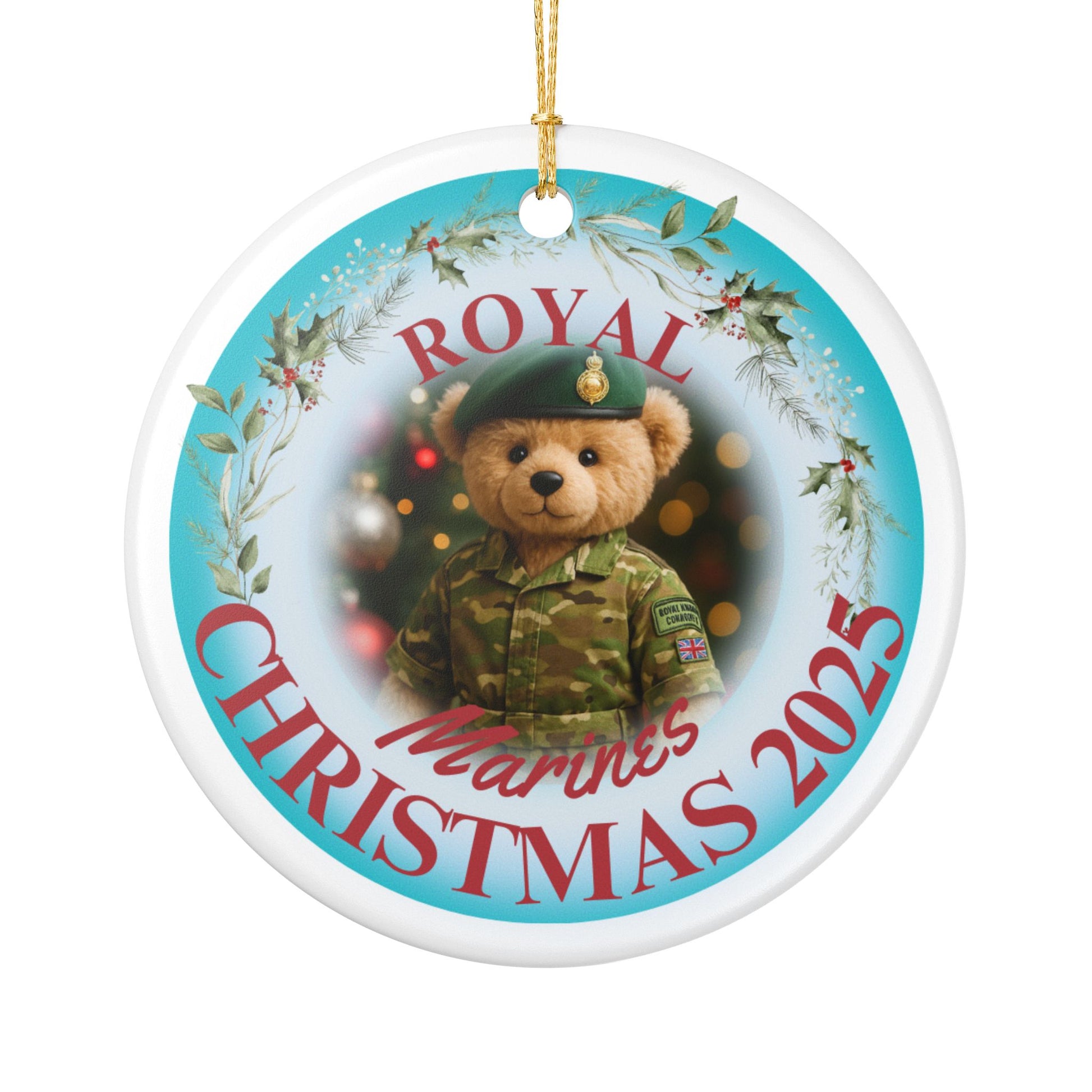 This charming design features a teddy bear in full Royal Marines uniform and green beret, surrounded by festive holly and the words “Royal Marines Christmas 2025.” It’s the perfect way to honour service, celebrate connection, and add a meaningful touch to your festive décor.